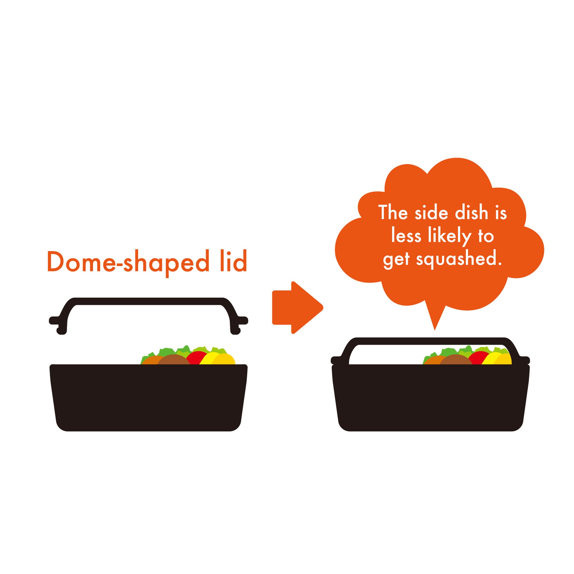 Tutup berbentuk kubah membantu mencegah makanan tertekan, sehingga hidangan tetap terlihat menarik seperti rasanya.