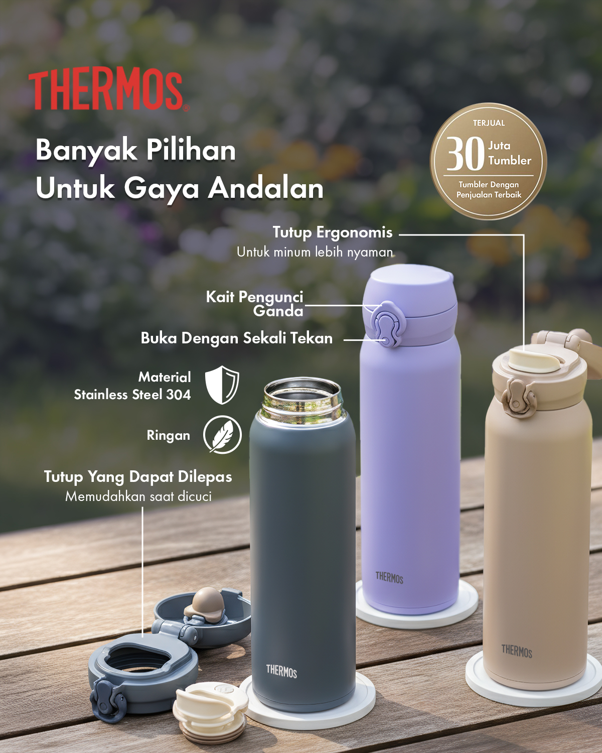 Seri Thermos® One-Push Tumbler terlaris dengan penjualan lebih dari 30 juta unit di Jepang!*