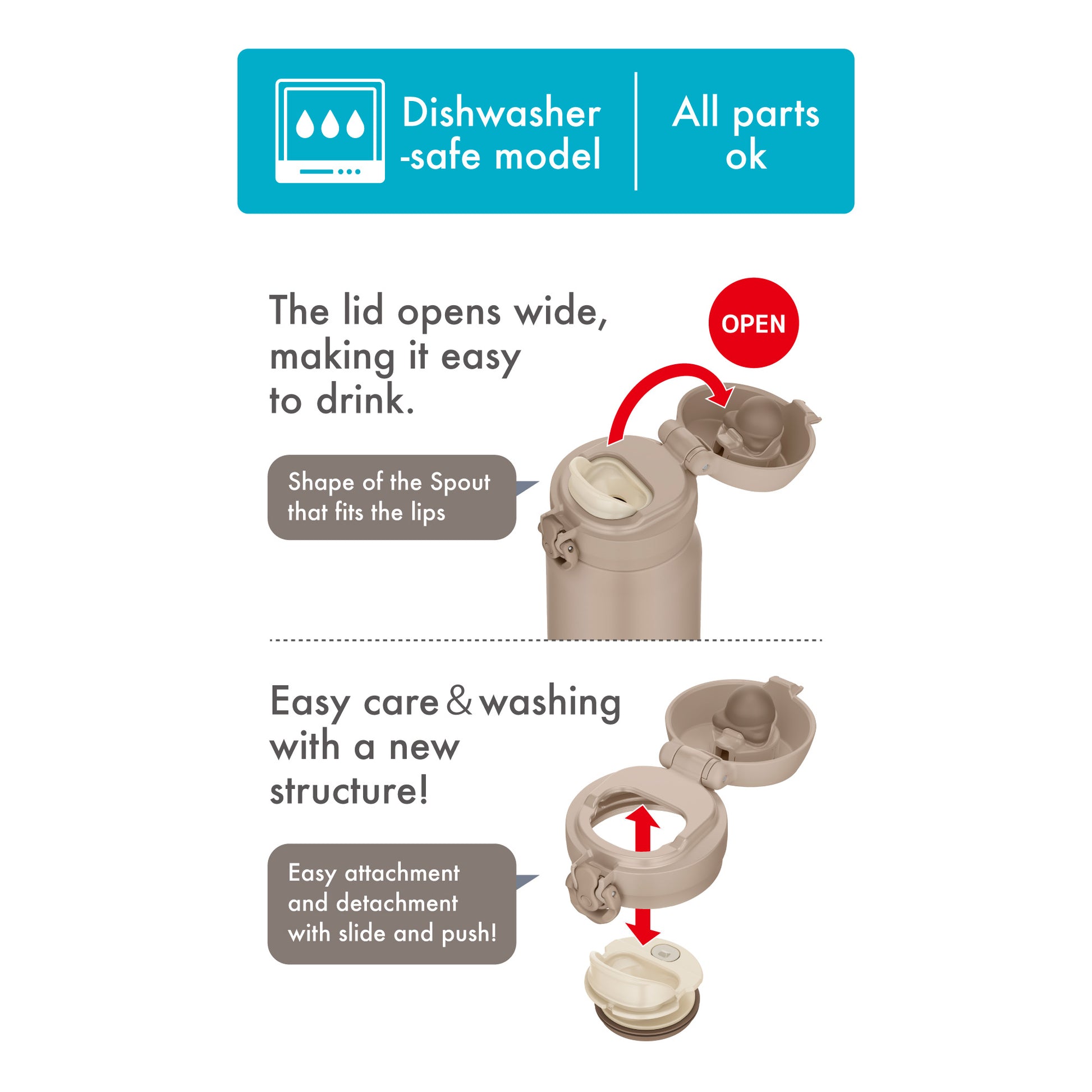 Dengan berat hanya 240 gram, tumbler ini dilengkapi tombol one-push inovatif dan lock ring untuk kemudahan membuka dengan satu tangan.